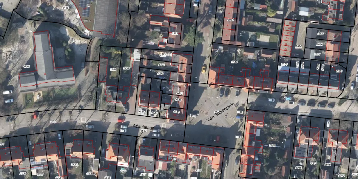 Het perceel waarop Van Suijlenplein 2 staat heeft een oppervlakte van 121 m². Dit is een middelgroot perceel. De perceeloppervlakte wordt geregistreerd door het Kadaster. Gedetailleerde informatie over de maten van dit perceel kunt u vinden in het rapport Kadastrale kaart met maatvoering van Van Suijlenplein 2.