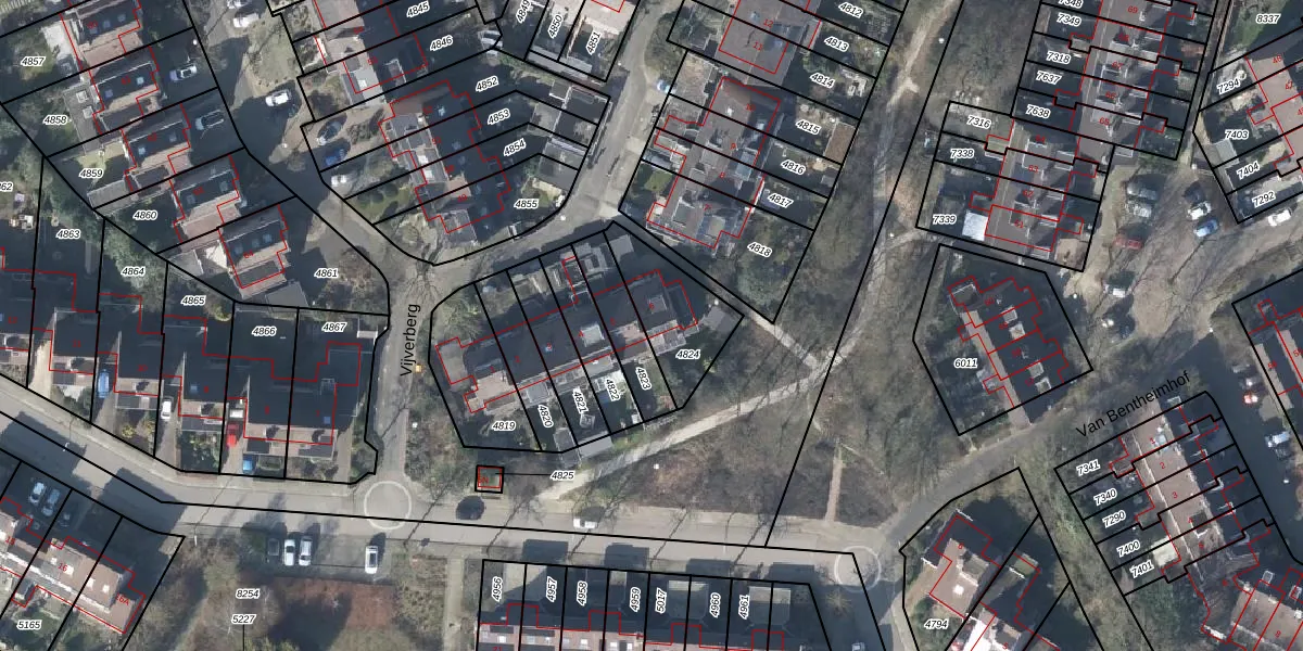 Vijverberg 6 is gelegen op kadastraal perceel RNN01H4824. Deze kadastrale aanduiding is uniek en wordt gebruikt door het Kadaster om eigendomsrechten en andere zakelijke rechten vast te leggen. Het perceel maakt onderdeel uit van de kadastrale gemeente Rhenen.
