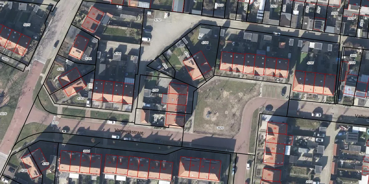 Vreewijkstraat 19 is gelegen op kadastraal perceel RNN01G4796. Deze kadastrale aanduiding is uniek en wordt gebruikt door het Kadaster om eigendomsrechten en andere zakelijke rechten vast te leggen. Het perceel maakt onderdeel uit van de kadastrale gemeente Rhenen.