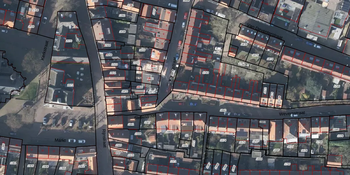 Het perceel waarop Weversstraat 22 staat heeft een oppervlakte van 1604 m². Dit is een zeer groot perceel. De perceeloppervlakte wordt geregistreerd door het Kadaster. Gedetailleerde informatie over de maten van dit perceel kunt u vinden in het rapport Kadastrale kaart met maatvoering van Weversstraat 22.