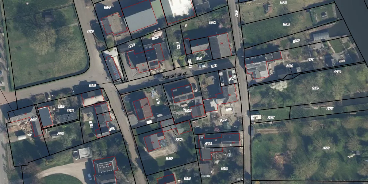Het perceel waarop Schoolstraat 2 staat heeft een oppervlakte van 415 m². Dit is een groot perceel. De perceeloppervlakte wordt geregistreerd door het Kadaster. Gedetailleerde informatie over de maten van dit perceel kunt u vinden in het rapport Kadastrale kaart met maatvoering van Schoolstraat 2.