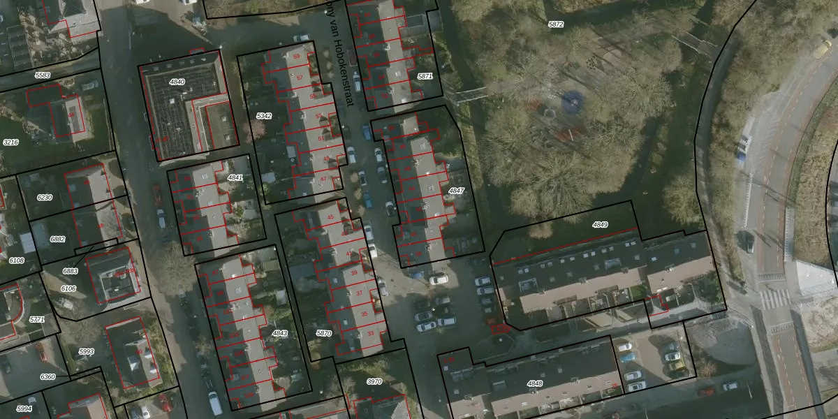 Anthony van Hobokenstraat 42 is gelegen op kadastraal perceel RHO00A4847. Deze kadastrale aanduiding is uniek en wordt gebruikt door het Kadaster om eigendomsrechten en andere zakelijke rechten vast te leggen. Het perceel maakt onderdeel uit van de kadastrale gemeente Rhoon.