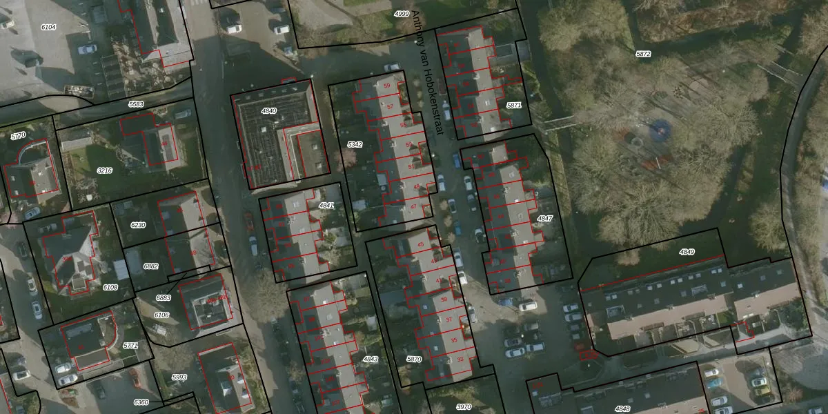 Het perceel waarop Anthony van Hobokenstraat 47 staat heeft een oppervlakte van 719 m². Dit is een groot perceel. De perceeloppervlakte wordt geregistreerd door het Kadaster. Gedetailleerde informatie over de maten van dit perceel kunt u vinden in het rapport Kadastrale kaart met maatvoering van Anthony van Hobokenstraat 47.