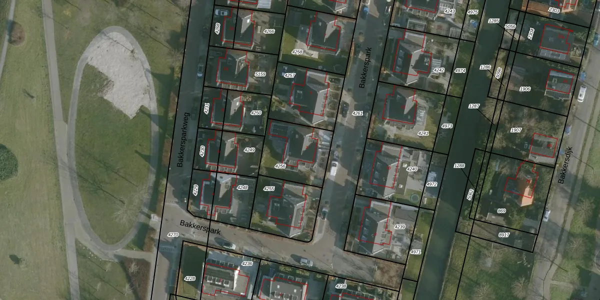 Gebruik de zoekbalk of klik op een perceel voor informatie over de adressen binnen dit perceel.