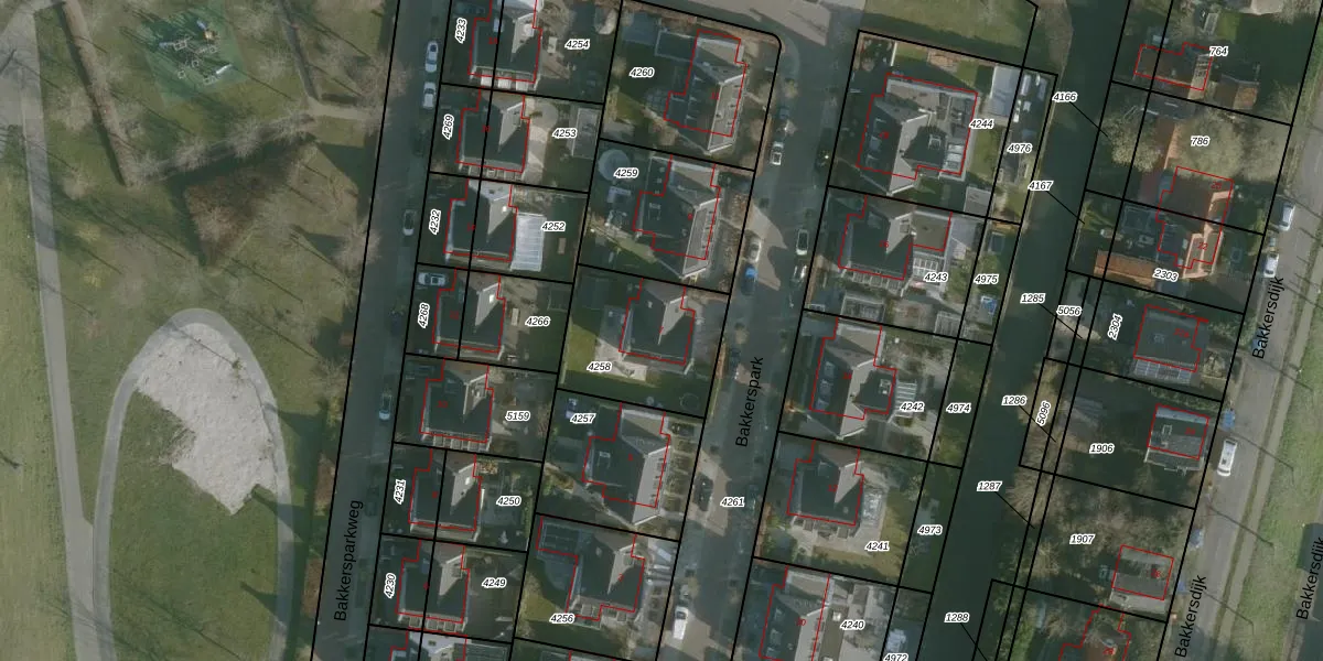 Het perceel waarop Bakkerspark 7 staat heeft een oppervlakte van 445 m². Dit is een groot perceel. De perceeloppervlakte wordt geregistreerd door het Kadaster. Gedetailleerde informatie over de maten van dit perceel kunt u vinden in het rapport Kadastrale kaart met maatvoering van Bakkerspark 7.
