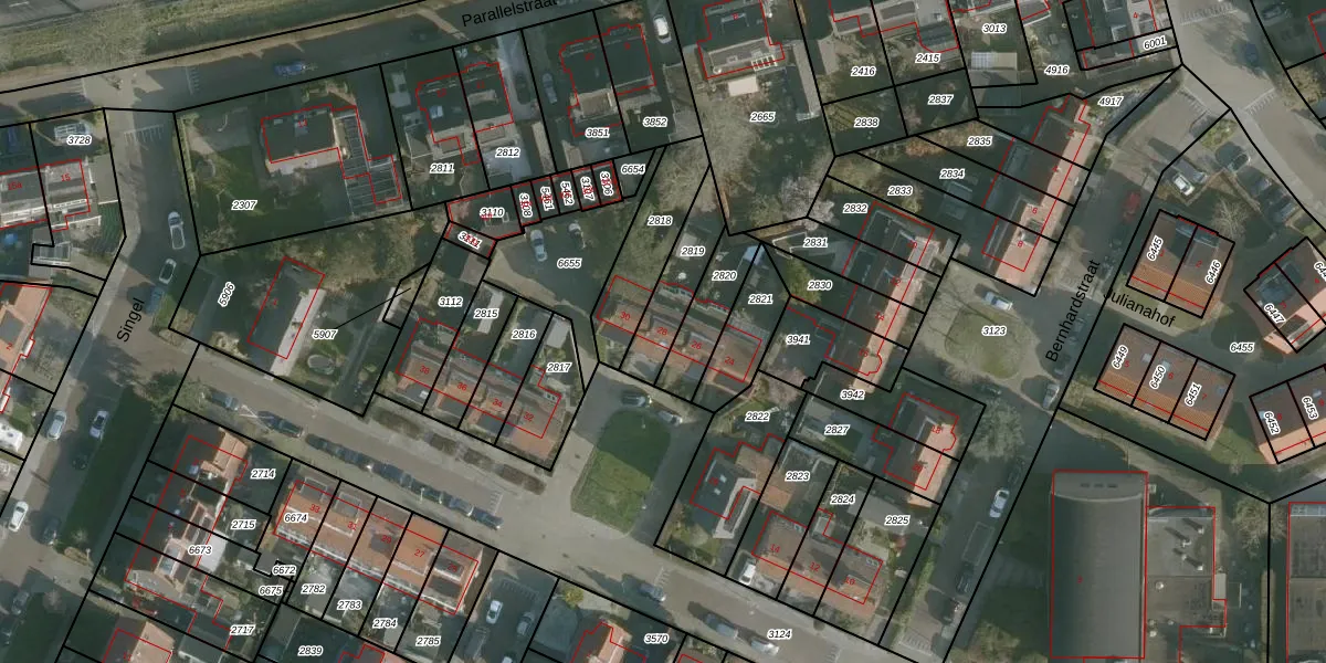 Gebruik de zoekbalk of klik op een perceel voor informatie over de adressen binnen dit perceel.