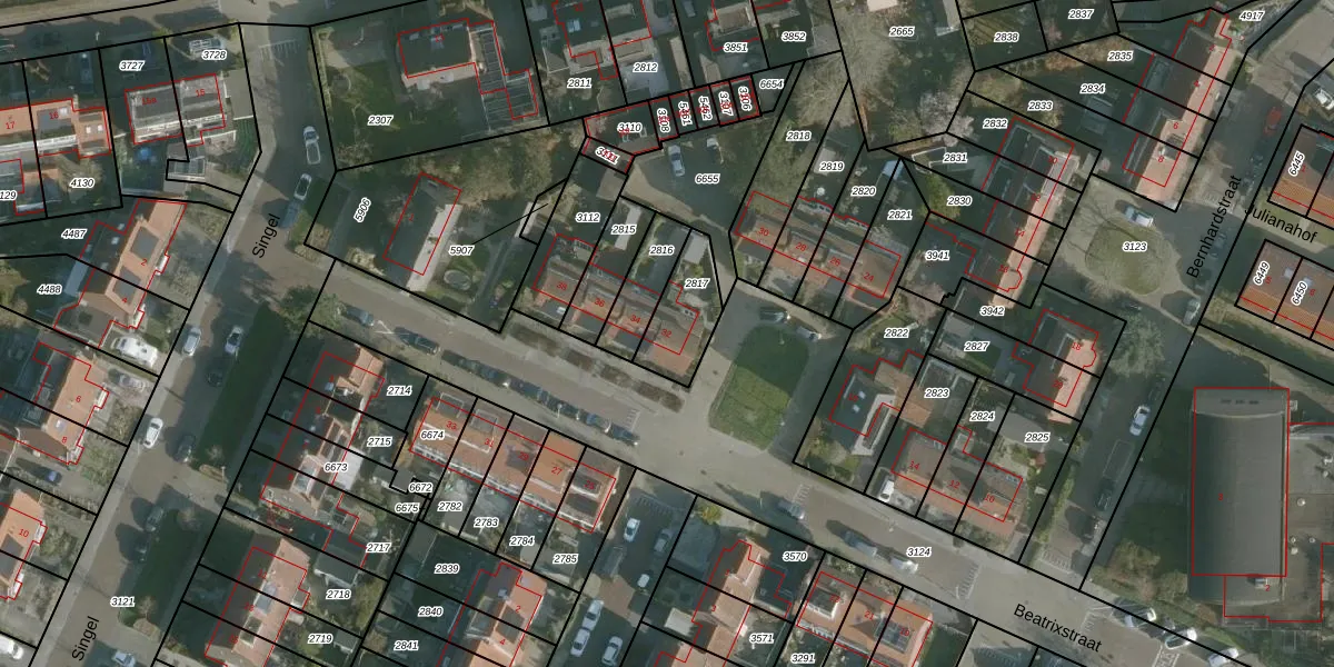 Gebruik de zoekbalk of klik op een perceel voor informatie over de adressen binnen dit perceel.