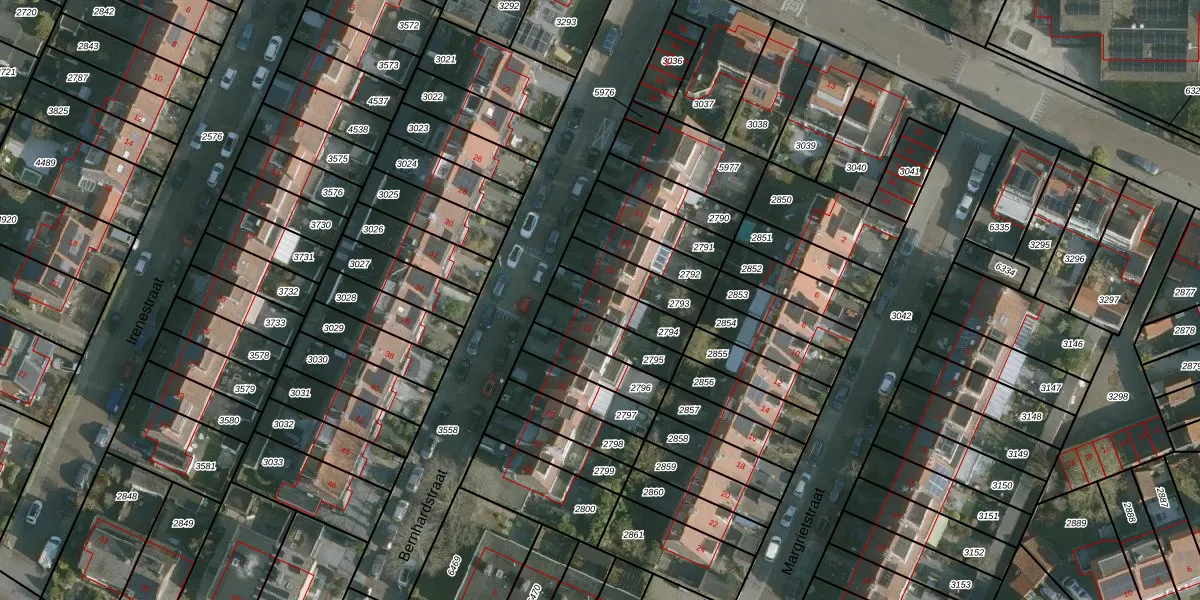 Gebruik de zoekbalk of klik op een perceel voor informatie over de adressen binnen dit perceel.