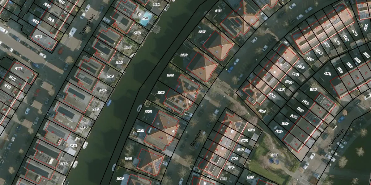 Bouwlust 107 is gelegen op kadastraal perceel RHO00B2005. Deze kadastrale aanduiding is uniek en wordt gebruikt door het Kadaster om eigendomsrechten en andere zakelijke rechten vast te leggen. Het perceel maakt onderdeel uit van de kadastrale gemeente Rhoon.