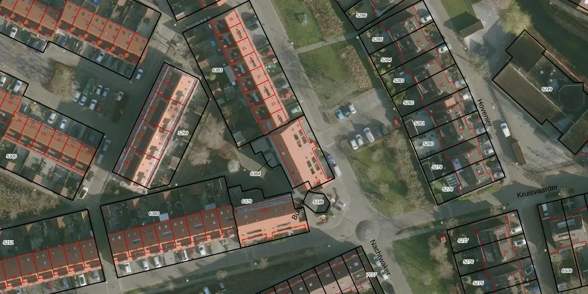 Het perceel waarop Burcht 14 staat heeft een oppervlakte van 384 m². Dit is een groot perceel. De perceeloppervlakte wordt geregistreerd door het Kadaster. Gedetailleerde informatie over de maten van dit perceel kunt u vinden in het rapport Kadastrale kaart met maatvoering van Burcht 14.