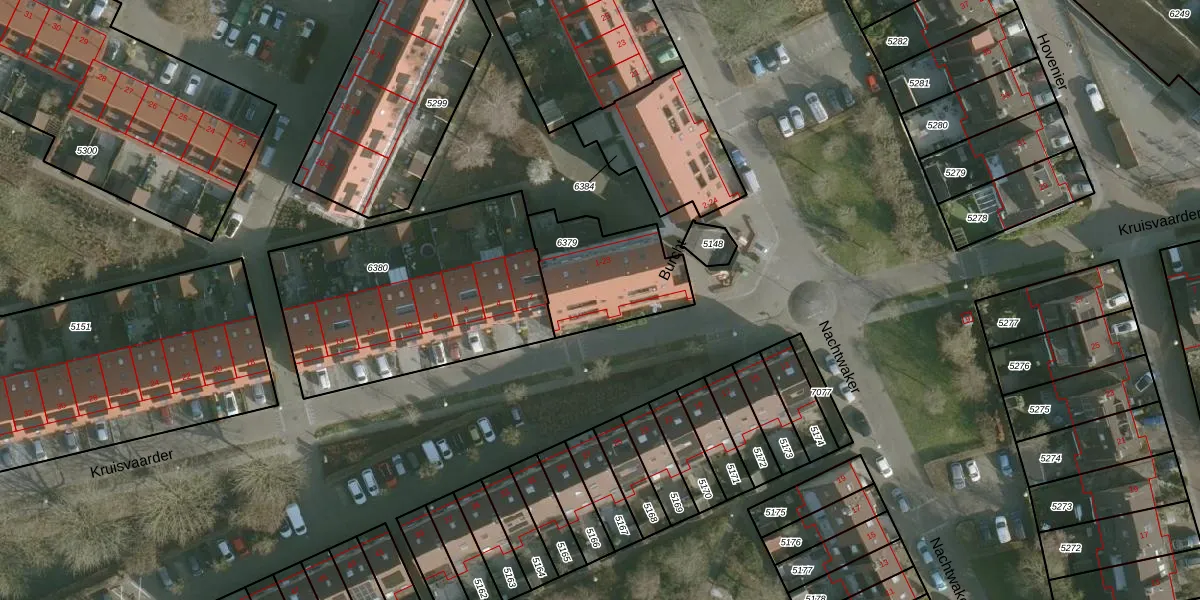Het perceel waarop Burcht 21 staat heeft een oppervlakte van 384 m². Dit is een groot perceel. De perceeloppervlakte wordt geregistreerd door het Kadaster. Gedetailleerde informatie over de maten van dit perceel kunt u vinden in het rapport Kadastrale kaart met maatvoering van Burcht 21.