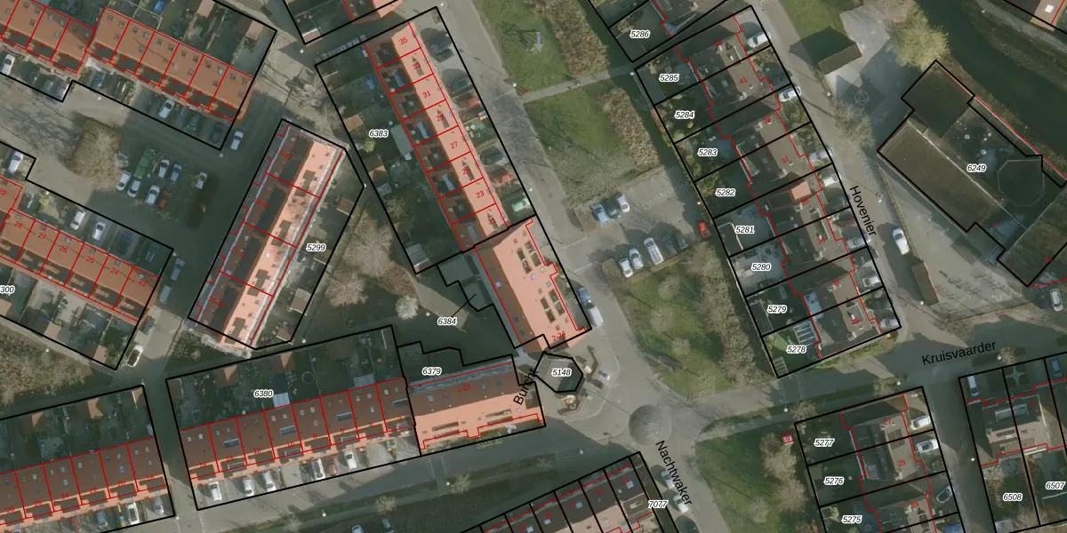 Het perceel waarop Burcht 22 staat heeft een oppervlakte van 384 m². Dit is een groot perceel. De perceeloppervlakte wordt geregistreerd door het Kadaster. Gedetailleerde informatie over de maten van dit perceel kunt u vinden in het rapport Kadastrale kaart met maatvoering van Burcht 22.