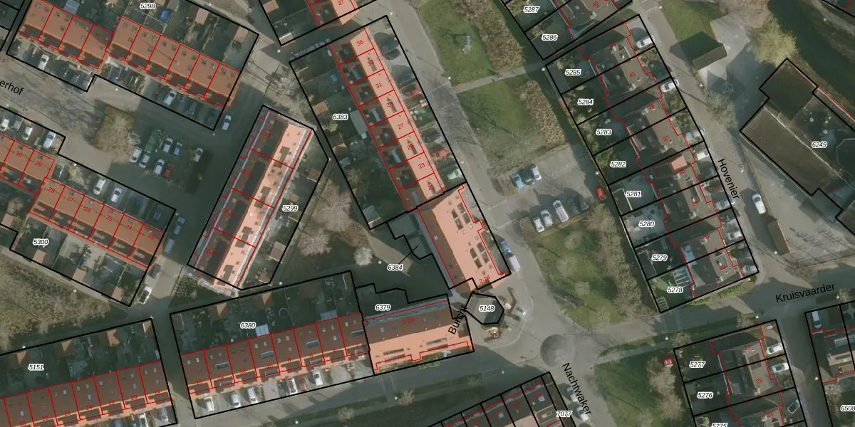 Het perceel waarop Burcht 8 staat heeft een oppervlakte van 384 m². Dit is een groot perceel. De perceeloppervlakte wordt geregistreerd door het Kadaster. Gedetailleerde informatie over de maten van dit perceel kunt u vinden in het rapport Kadastrale kaart met maatvoering van Burcht 8.