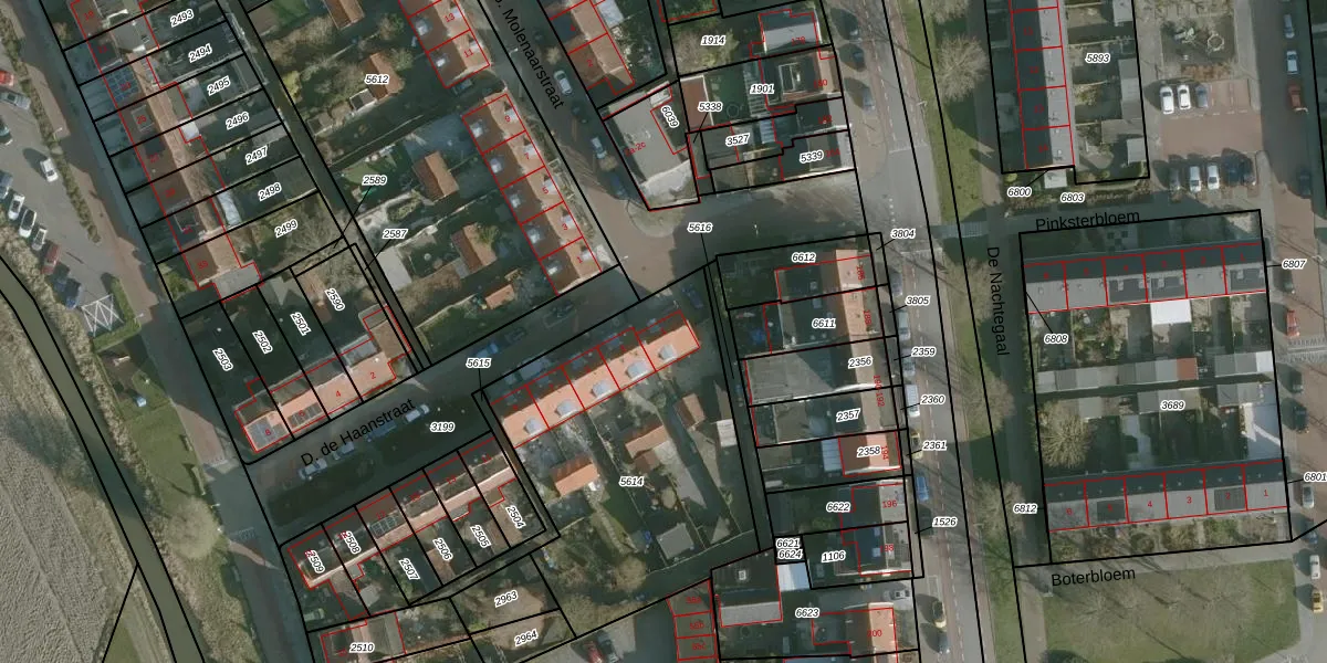 D. de Haanstraat 1 is gelegen op kadastraal perceel RHO00A5614. Deze kadastrale aanduiding is uniek en wordt gebruikt door het Kadaster om eigendomsrechten en andere zakelijke rechten vast te leggen. Het perceel maakt onderdeel uit van de kadastrale gemeente Rhoon.
