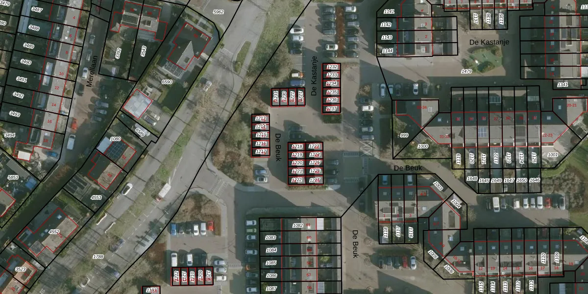 Het perceel waarop De Beuk 70 staat heeft een oppervlakte van 17 m². Dit is een klein perceel. De perceeloppervlakte wordt geregistreerd door het Kadaster. Gedetailleerde informatie over de maten van dit perceel kunt u vinden in het rapport Kadastrale kaart met maatvoering van De Beuk 70.