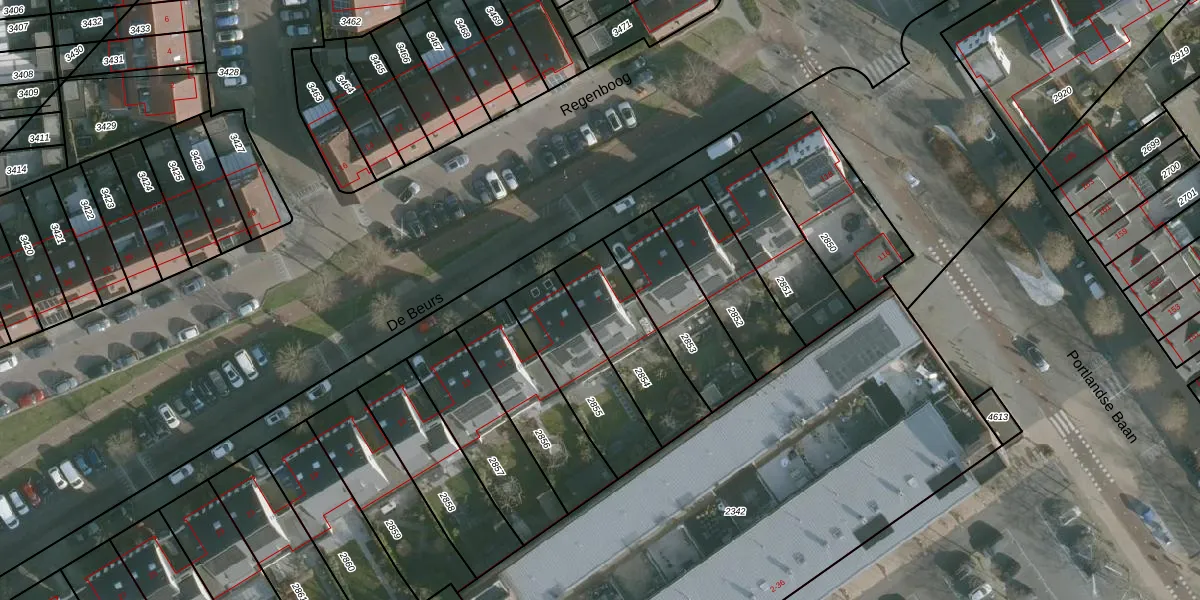 Gebruik de zoekbalk of klik op een perceel voor informatie over de adressen binnen dit perceel.