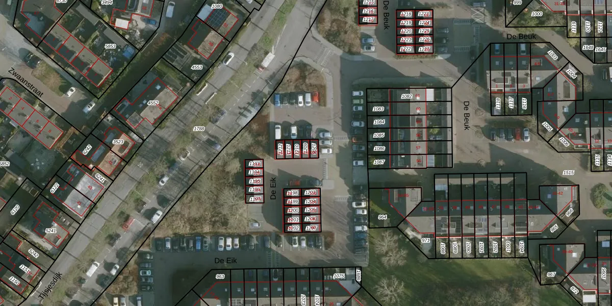 Gebruik de zoekbalk of klik op een perceel voor informatie over de adressen binnen dit perceel.