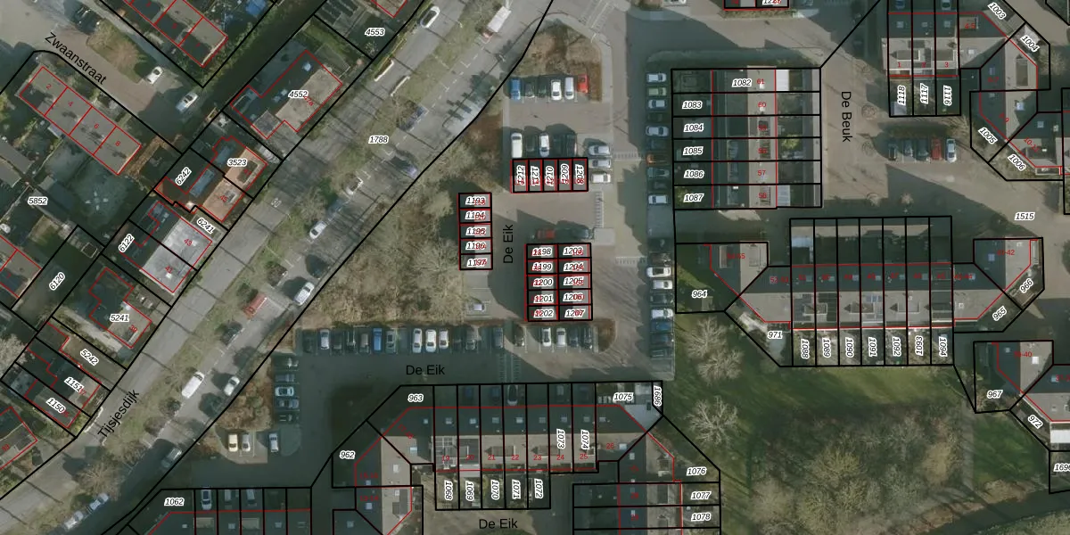 Gebruik de zoekbalk of klik op een perceel voor informatie over de adressen binnen dit perceel.