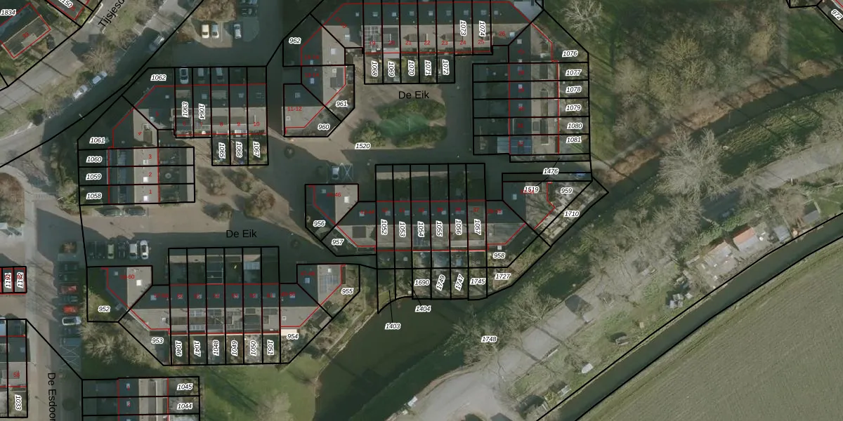 Het perceel waarop De Eik 40 staat heeft een oppervlakte van 108 m². Dit is een middelgroot perceel. De perceeloppervlakte wordt geregistreerd door het Kadaster. Gedetailleerde informatie over de maten van dit perceel kunt u vinden in het rapport Kadastrale kaart met maatvoering van De Eik 40.