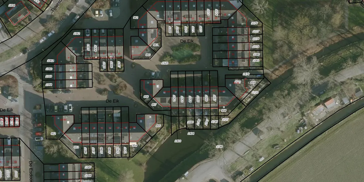 Het perceel waarop De Eik 41 staat heeft een oppervlakte van 106 m². Dit is een middelgroot perceel. De perceeloppervlakte wordt geregistreerd door het Kadaster. Gedetailleerde informatie over de maten van dit perceel kunt u vinden in het rapport Kadastrale kaart met maatvoering van De Eik 41.