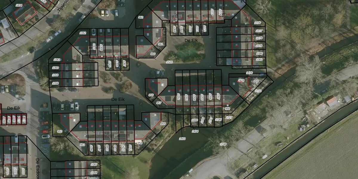Het perceel waarop De Eik 42 staat heeft een oppervlakte van 107 m². Dit is een middelgroot perceel. De perceeloppervlakte wordt geregistreerd door het Kadaster. Gedetailleerde informatie over de maten van dit perceel kunt u vinden in het rapport Kadastrale kaart met maatvoering van De Eik 42.