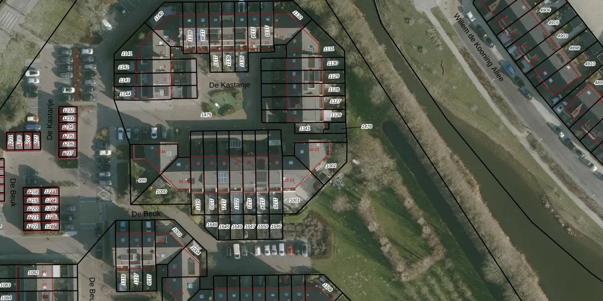 De Kastanje 20 is gelegen op kadastraal perceel RHO00C1002. Deze kadastrale aanduiding is uniek en wordt gebruikt door het Kadaster om eigendomsrechten en andere zakelijke rechten vast te leggen. Het perceel maakt onderdeel uit van de kadastrale gemeente Rhoon.