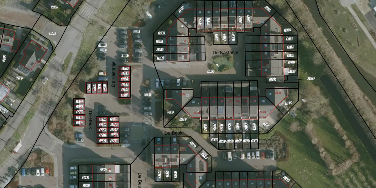 Het perceel waarop De Kastanje 34 staat heeft een oppervlakte van 196 m². Dit is een middelgroot perceel. De perceeloppervlakte wordt geregistreerd door het Kadaster. Gedetailleerde informatie over de maten van dit perceel kunt u vinden in het rapport Kadastrale kaart met maatvoering van De Kastanje 34.