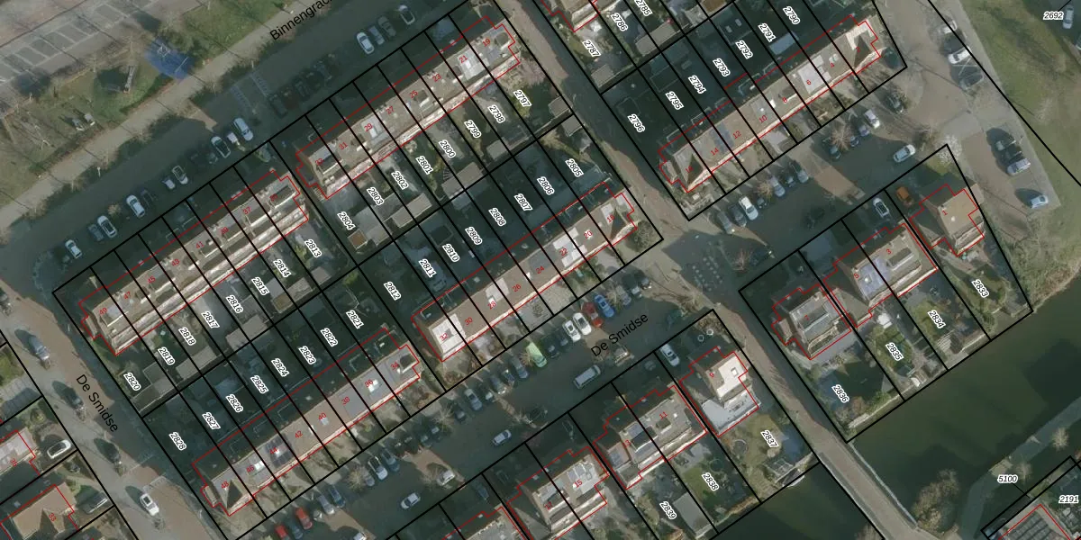 De Smidse 24 is gelegen op kadastraal perceel RHO00B2808. Deze kadastrale aanduiding is uniek en wordt gebruikt door het Kadaster om eigendomsrechten en andere zakelijke rechten vast te leggen. Het perceel maakt onderdeel uit van de kadastrale gemeente Rhoon.