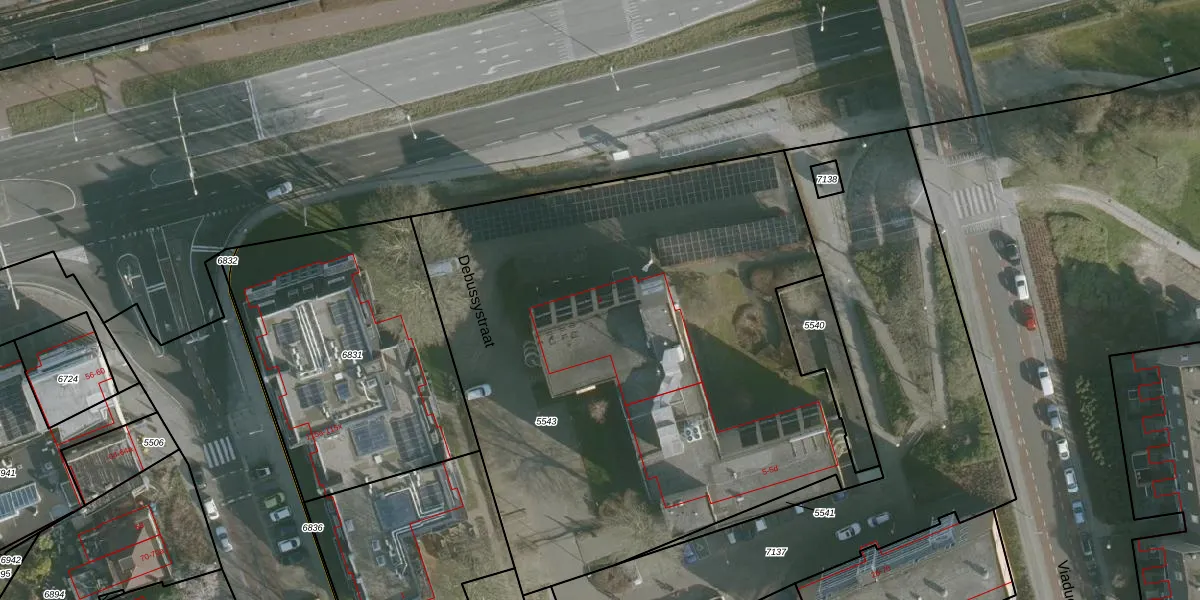 Het perceel waarop Debussystraat 2 staat heeft een oppervlakte van 3630 m². Dit is een zeer groot perceel. De perceeloppervlakte wordt geregistreerd door het Kadaster. Gedetailleerde informatie over de maten van dit perceel kunt u vinden in het rapport Kadastrale kaart met maatvoering van Debussystraat 2.