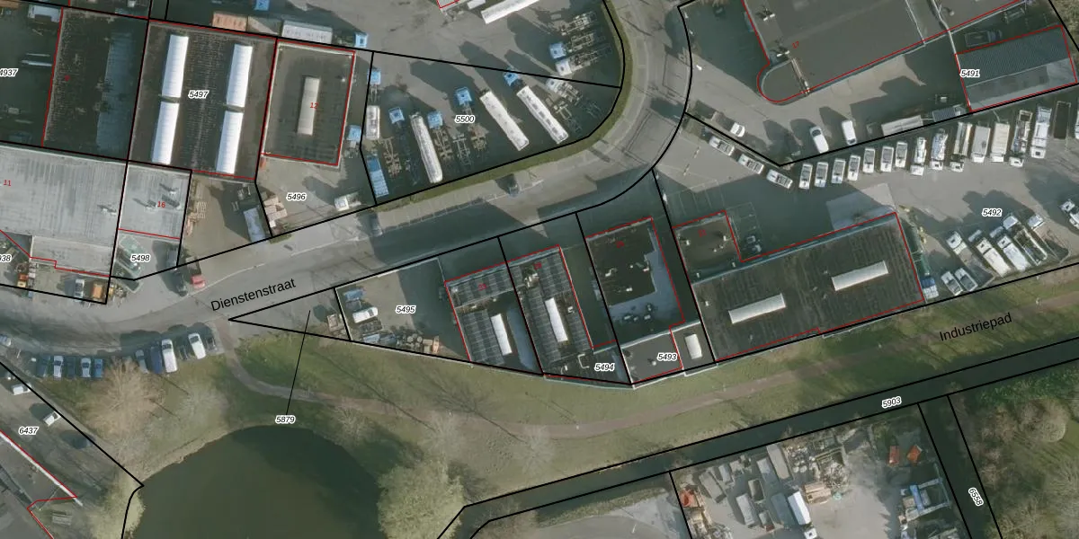 Het perceel waarop Dienstenstraat 29 staat heeft een oppervlakte van 455 m². Dit is een groot perceel. De perceeloppervlakte wordt geregistreerd door het Kadaster. Gedetailleerde informatie over de maten van dit perceel kunt u vinden in het rapport Kadastrale kaart met maatvoering van Dienstenstraat 29.