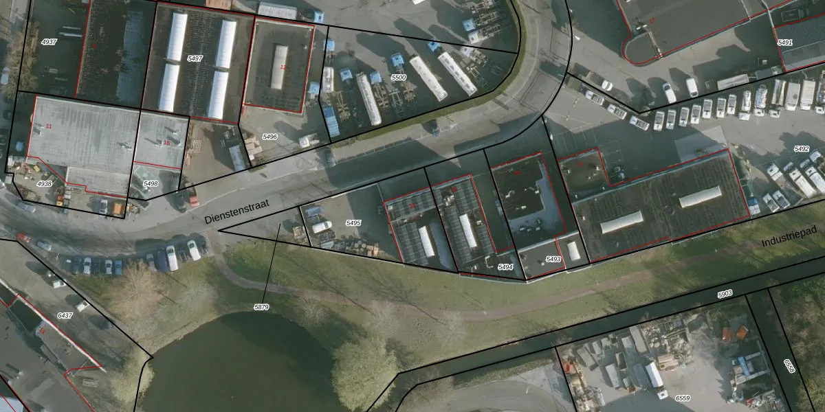 Het perceel waarop Dienstenstraat 33 staat heeft een oppervlakte van 600 m². Dit is een groot perceel. De perceeloppervlakte wordt geregistreerd door het Kadaster. Gedetailleerde informatie over de maten van dit perceel kunt u vinden in het rapport Kadastrale kaart met maatvoering van Dienstenstraat 33.