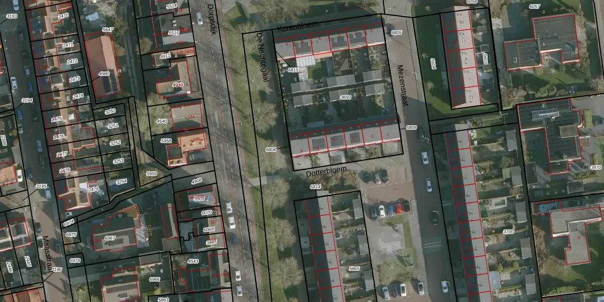 Dotterbloem 6 is gelegen op kadastraal perceel RHO00A3693. Deze kadastrale aanduiding is uniek en wordt gebruikt door het Kadaster om eigendomsrechten en andere zakelijke rechten vast te leggen. Het perceel maakt onderdeel uit van de kadastrale gemeente Rhoon.