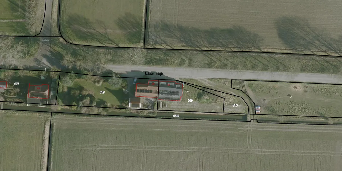Essendijk 30 is gelegen op kadastraal perceel RHO00B747. Deze kadastrale aanduiding is uniek en wordt gebruikt door het Kadaster om eigendomsrechten en andere zakelijke rechten vast te leggen. Het perceel maakt onderdeel uit van de kadastrale gemeente Rhoon.