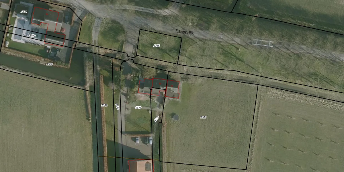 Het perceel waarop Essendijk 40 staat heeft een oppervlakte van 2680 m². Dit is een zeer groot perceel. De perceeloppervlakte wordt geregistreerd door het Kadaster. Gedetailleerde informatie over de maten van dit perceel kunt u vinden in het rapport Kadastrale kaart met maatvoering van Essendijk 40.