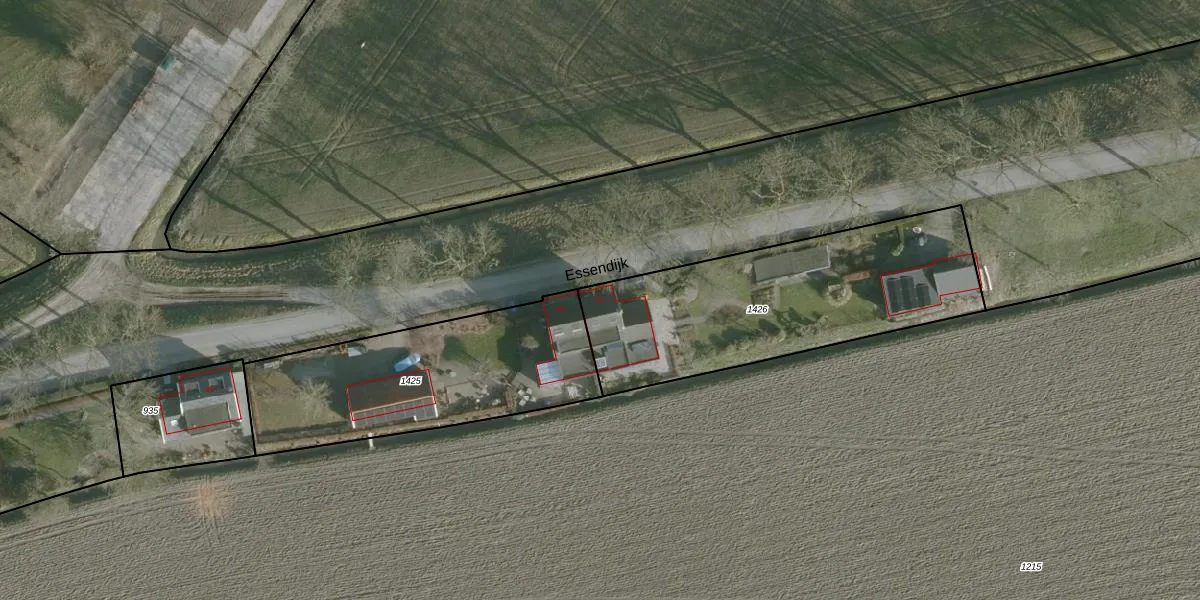 Het perceel waarop Essendijk 52 staat heeft een oppervlakte van 1170 m². Dit is een zeer groot perceel. De perceeloppervlakte wordt geregistreerd door het Kadaster. Gedetailleerde informatie over de maten van dit perceel kunt u vinden in het rapport Kadastrale kaart met maatvoering van Essendijk 52.