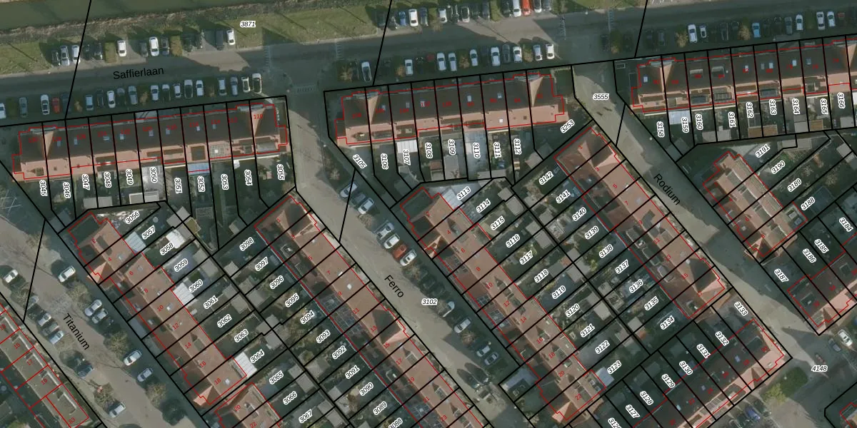 Gebruik de zoekbalk of klik op een perceel voor informatie over de adressen binnen dit perceel.