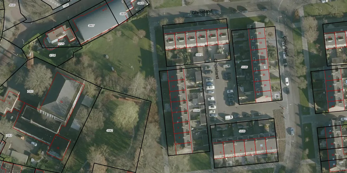 Ghijseland 13 is gelegen op kadastraal perceel RHO00A5598. Deze kadastrale aanduiding is uniek en wordt gebruikt door het Kadaster om eigendomsrechten en andere zakelijke rechten vast te leggen. Het perceel maakt onderdeel uit van de kadastrale gemeente Rhoon.