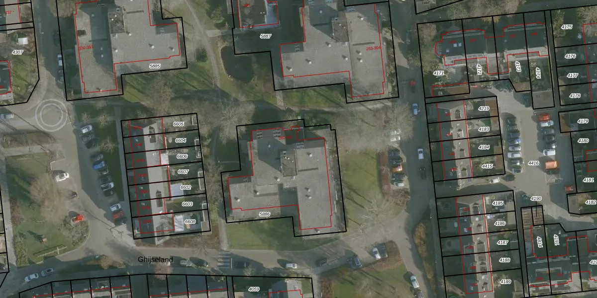 Ghijseland 264 is gelegen op kadastraal perceel RHO00A5886. Deze kadastrale aanduiding is uniek en wordt gebruikt door het Kadaster om eigendomsrechten en andere zakelijke rechten vast te leggen. Het perceel maakt onderdeel uit van de kadastrale gemeente Rhoon.