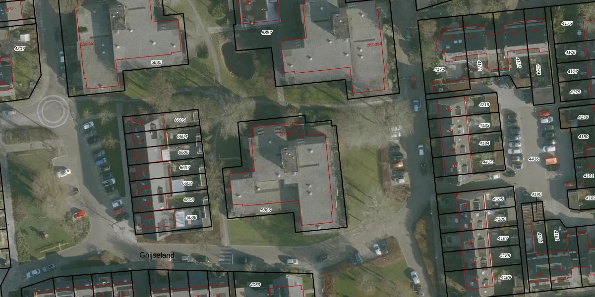 Ghijseland 265 is gelegen op kadastraal perceel RHO00A5886. Deze kadastrale aanduiding is uniek en wordt gebruikt door het Kadaster om eigendomsrechten en andere zakelijke rechten vast te leggen. Het perceel maakt onderdeel uit van de kadastrale gemeente Rhoon.
