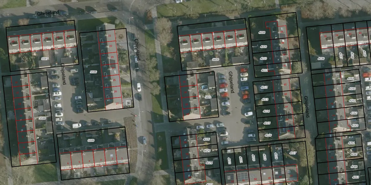 Het perceel waarop Ghijseland 30 staat heeft een oppervlakte van 667 m². Dit is een groot perceel. De perceeloppervlakte wordt geregistreerd door het Kadaster. Gedetailleerde informatie over de maten van dit perceel kunt u vinden in het rapport Kadastrale kaart met maatvoering van Ghijseland 30.