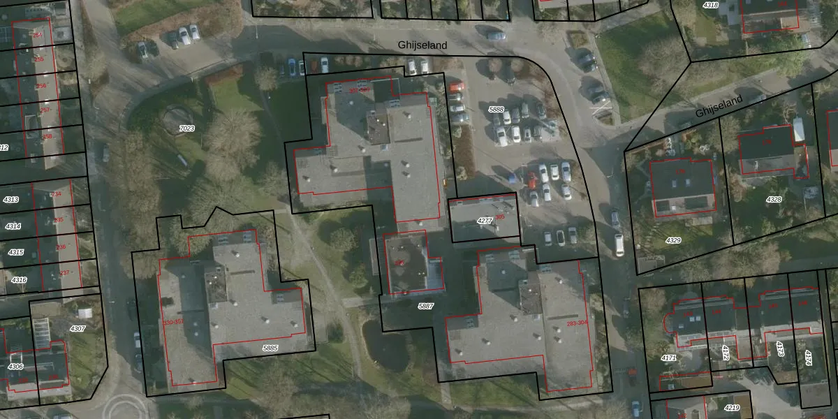 Ghijseland 307 is gelegen op kadastraal perceel RHO00A5887. Deze kadastrale aanduiding is uniek en wordt gebruikt door het Kadaster om eigendomsrechten en andere zakelijke rechten vast te leggen. Het perceel maakt onderdeel uit van de kadastrale gemeente Rhoon.