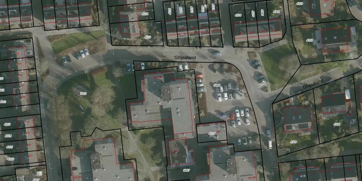 Ghijseland 317 is gelegen op kadastraal perceel RHO00A5887. Deze kadastrale aanduiding is uniek en wordt gebruikt door het Kadaster om eigendomsrechten en andere zakelijke rechten vast te leggen. Het perceel maakt onderdeel uit van de kadastrale gemeente Rhoon.