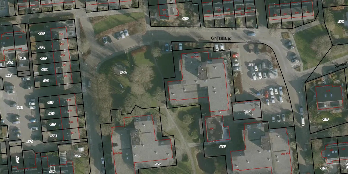 Ghijseland 318 is gelegen op kadastraal perceel RHO00A5887. Deze kadastrale aanduiding is uniek en wordt gebruikt door het Kadaster om eigendomsrechten en andere zakelijke rechten vast te leggen. Het perceel maakt onderdeel uit van de kadastrale gemeente Rhoon.
