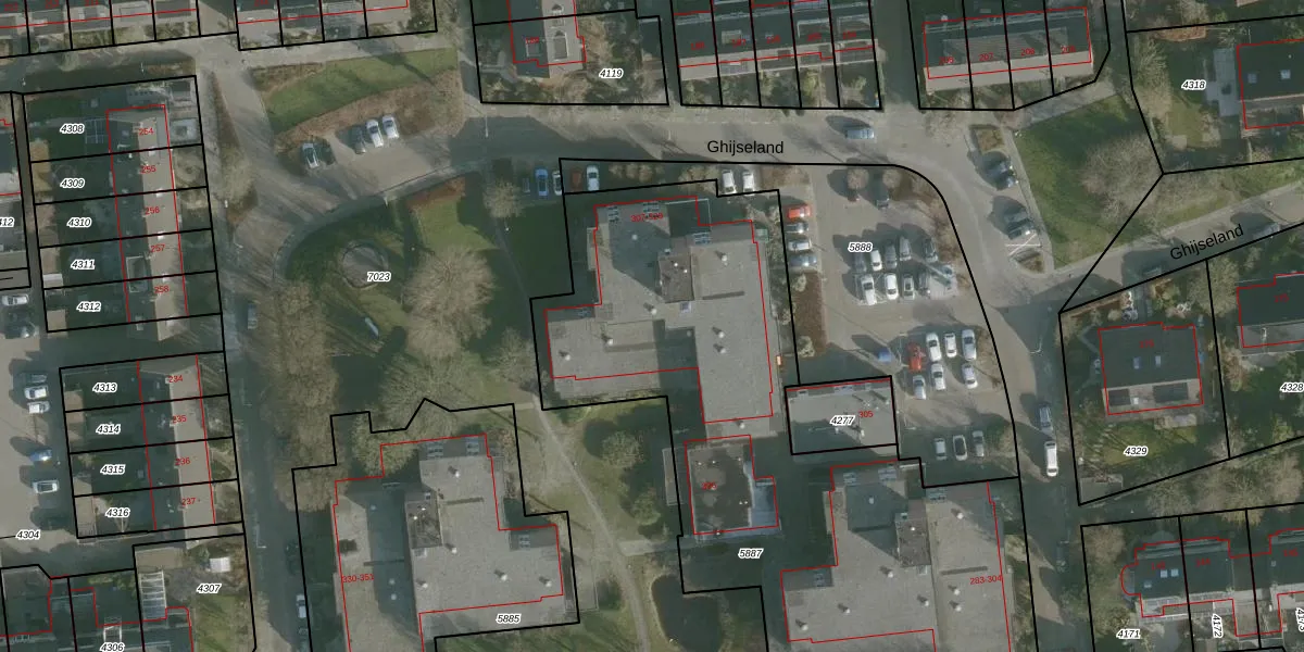Het perceel waarop Ghijseland 320 staat heeft een oppervlakte van 2920 m². Dit is een zeer groot perceel. De perceeloppervlakte wordt geregistreerd door het Kadaster. Gedetailleerde informatie over de maten van dit perceel kunt u vinden in het rapport Kadastrale kaart met maatvoering van Ghijseland 320.