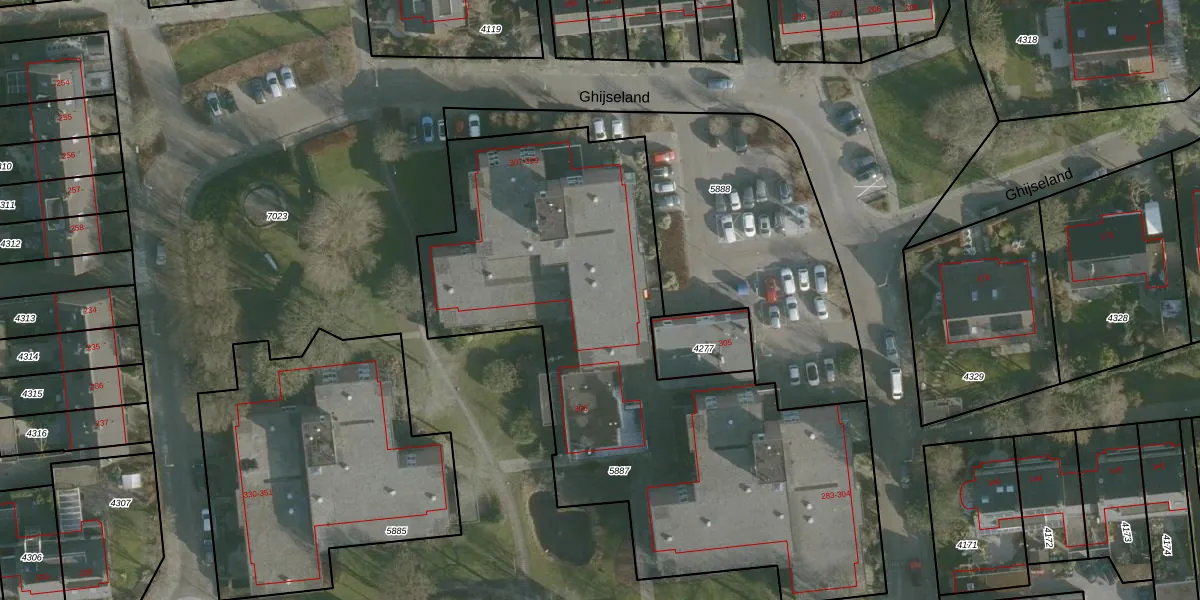 Het perceel waarop Ghijseland 328 staat heeft een oppervlakte van 2920 m². Dit is een zeer groot perceel. De perceeloppervlakte wordt geregistreerd door het Kadaster. Gedetailleerde informatie over de maten van dit perceel kunt u vinden in het rapport Kadastrale kaart met maatvoering van Ghijseland 328.