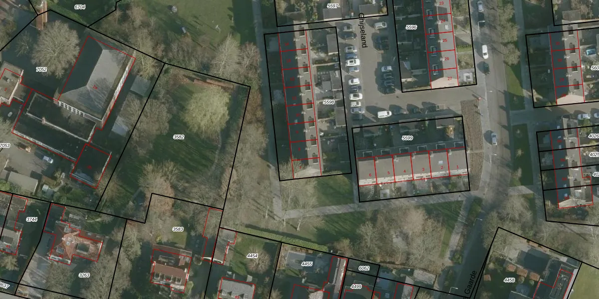 Het perceel waarop Ghijseland 8 staat heeft een oppervlakte van 1189 m². Dit is een zeer groot perceel. De perceeloppervlakte wordt geregistreerd door het Kadaster. Gedetailleerde informatie over de maten van dit perceel kunt u vinden in het rapport Kadastrale kaart met maatvoering van Ghijseland 8.