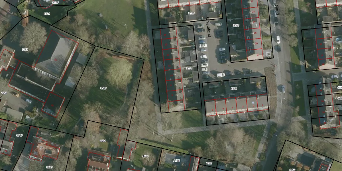Het perceel waarop Ghijseland 9 staat heeft een oppervlakte van 1189 m². Dit is een zeer groot perceel. De perceeloppervlakte wordt geregistreerd door het Kadaster. Gedetailleerde informatie over de maten van dit perceel kunt u vinden in het rapport Kadastrale kaart met maatvoering van Ghijseland 9.