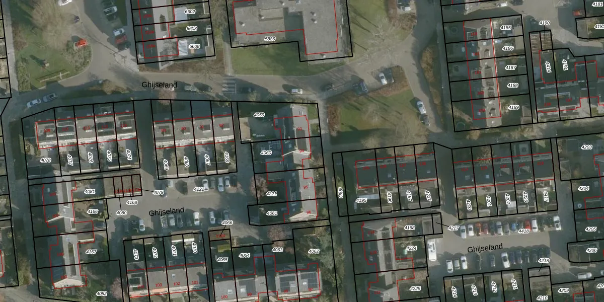 Het perceel waarop Ghijseland 94 staat heeft een oppervlakte van 241 m². Dit is een middelgroot perceel. De perceeloppervlakte wordt geregistreerd door het Kadaster. Gedetailleerde informatie over de maten van dit perceel kunt u vinden in het rapport Kadastrale kaart met maatvoering van Ghijseland 94.