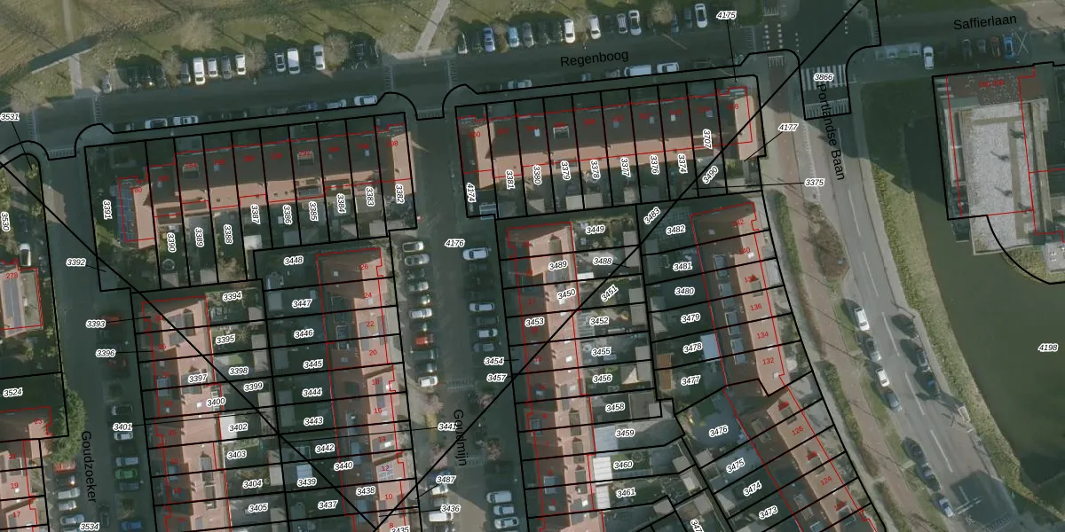 Gebruik de zoekbalk of klik op een perceel voor informatie over de adressen binnen dit perceel.