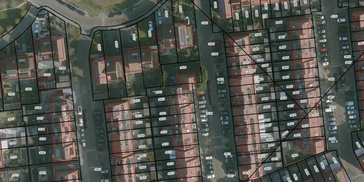 Gebruik de zoekbalk of klik op een perceel voor informatie over de adressen binnen dit perceel.
